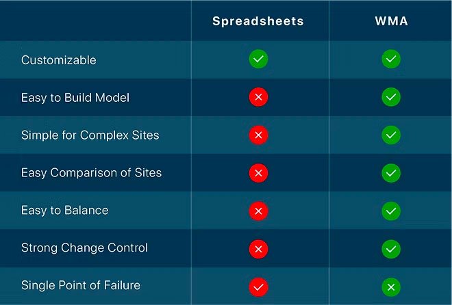 Model formats and approaches can vary from site to site, model owner to model owner. Having spreadsheets that provide accurate, apples-to-apples comparisons of site is a challenge with a spreadsheet.